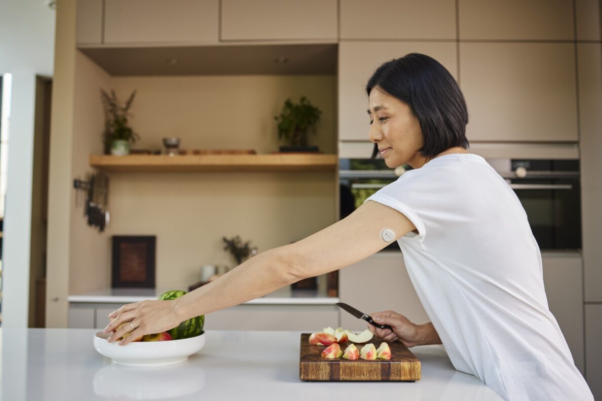 CGMは、専用のセンサーを腕に装着することで、間質液中のブドウ糖濃度を連続的に測定し、血糖値の推移をリアルタイムに把握できる医療機器です。